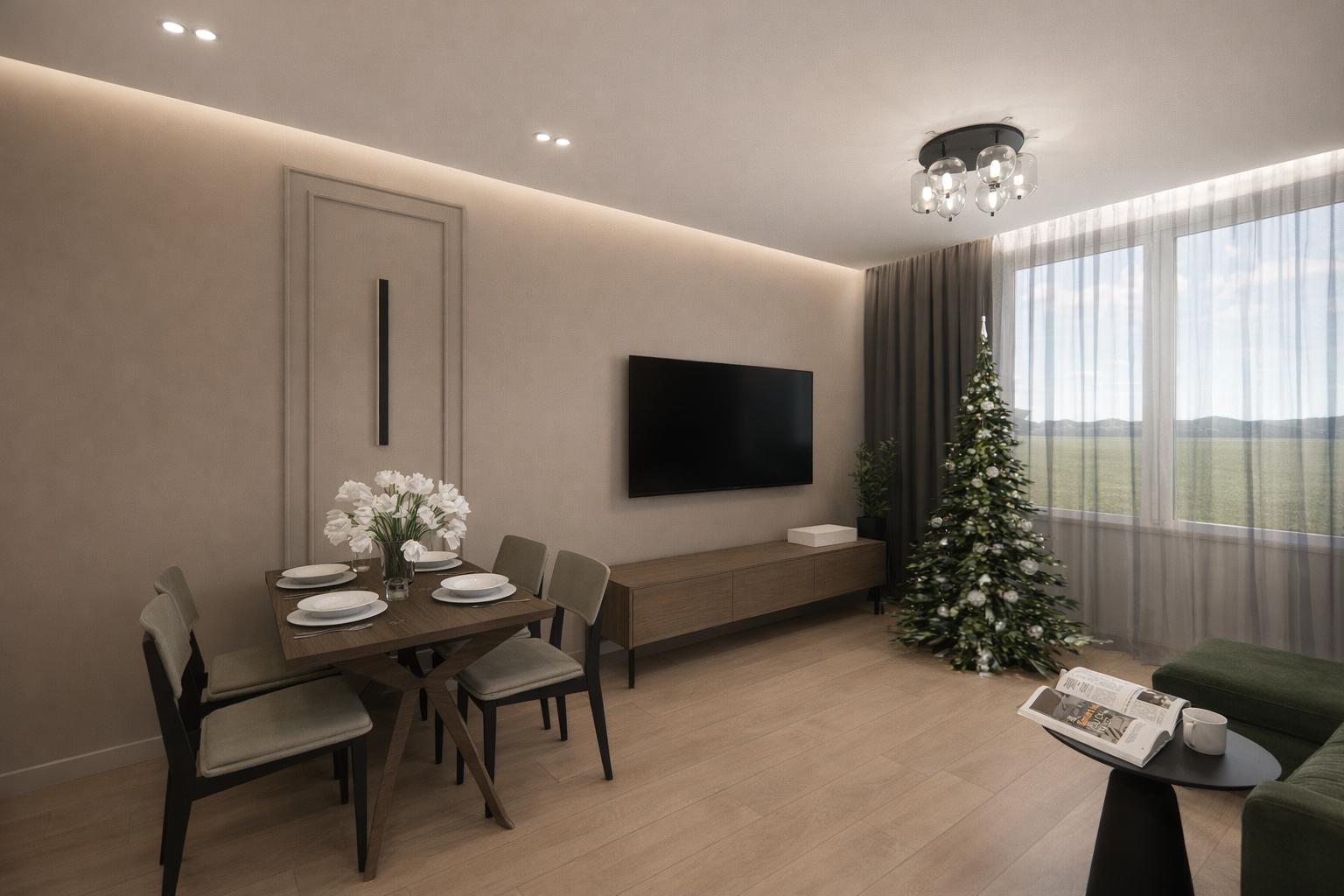 Уютное пространство, природные приглушенные цвета — основа для комфортного пребывания дома. Здесь будет приятно и отдыхать после рабочего дня, и принимать друзей.